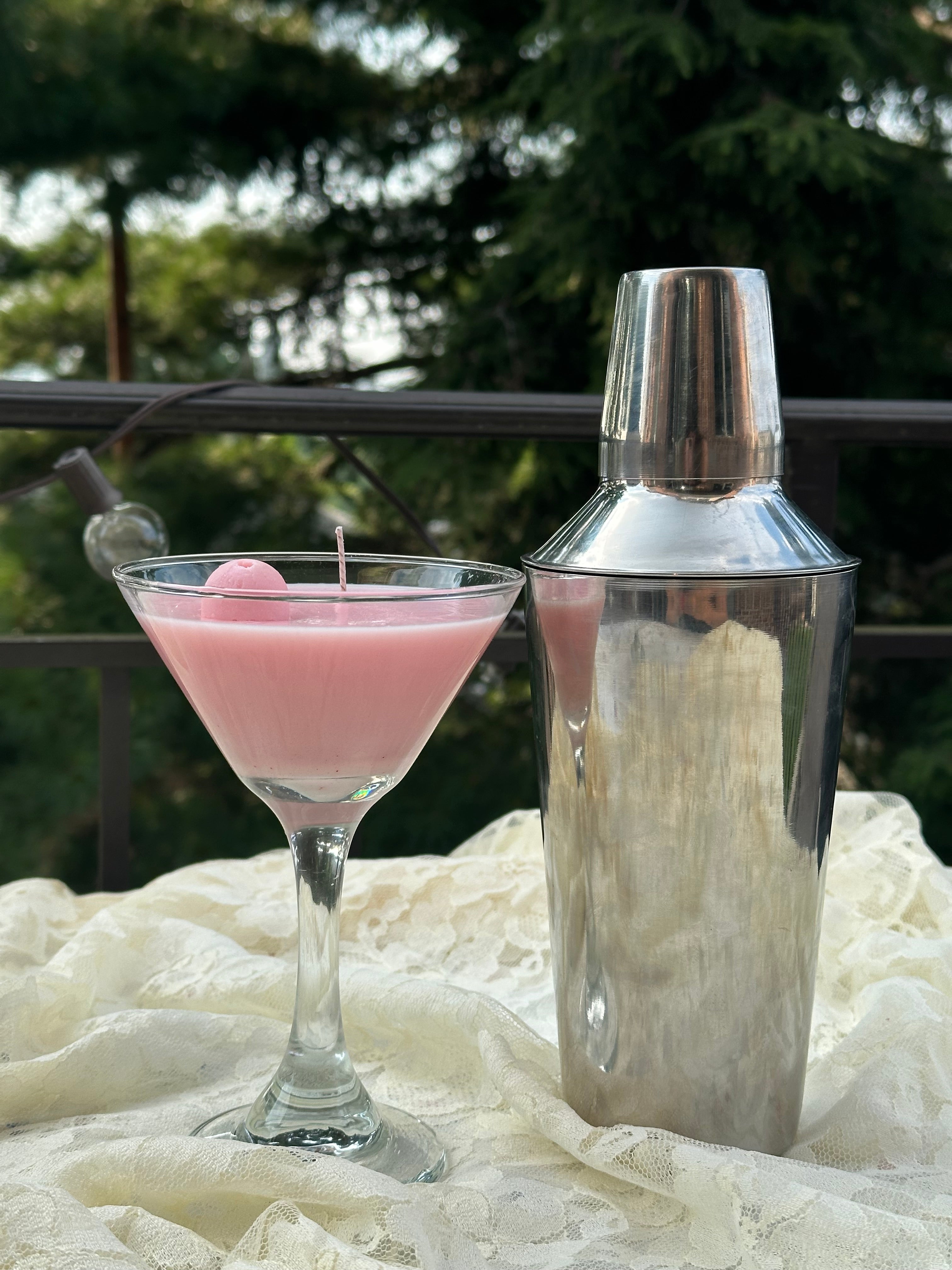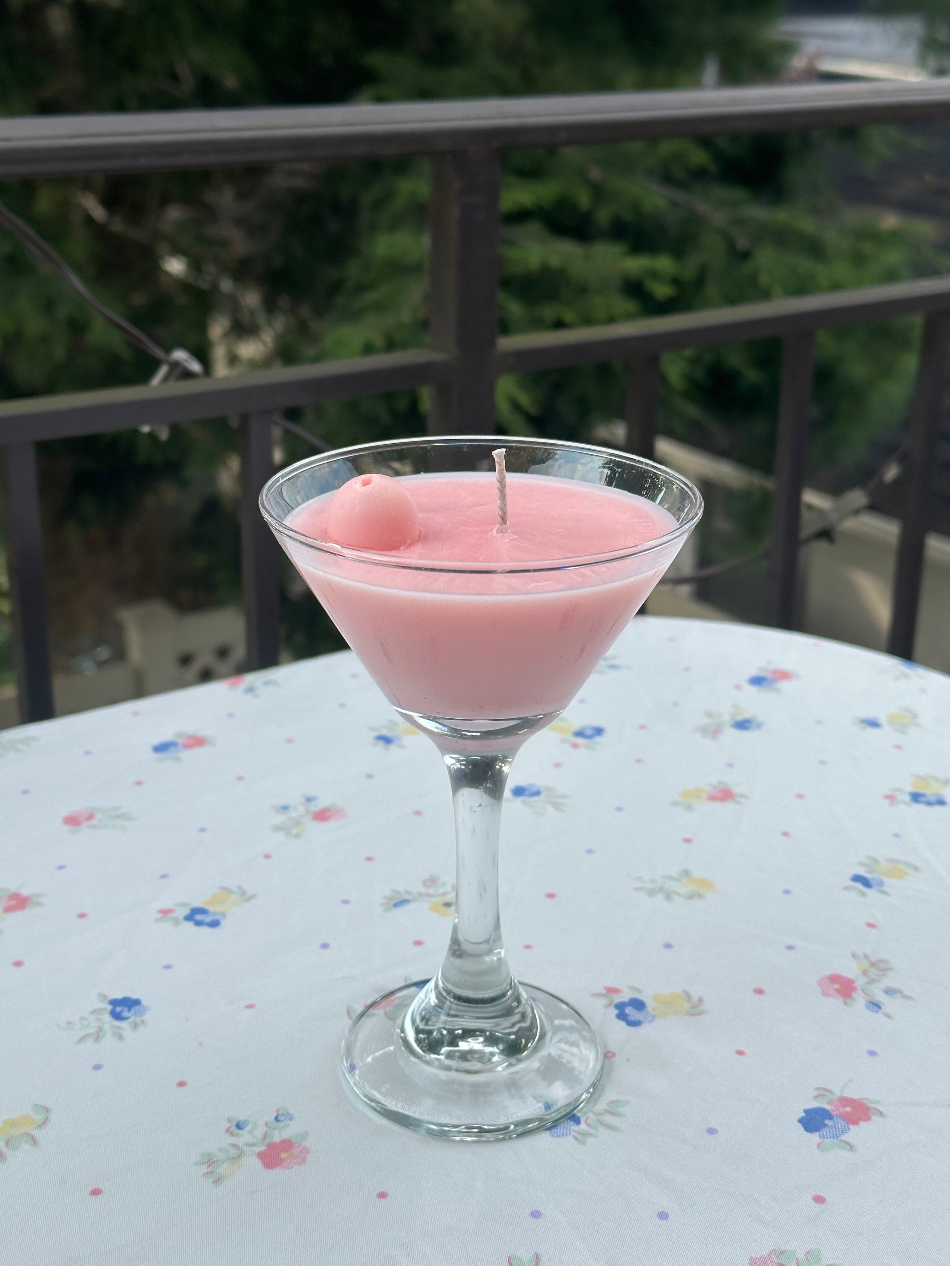 The lychee babe martini candle !!! The aesthetic look of a lychee martini and the scent of lychee blush . This is perfect for the friend how loves a martini. Perfect for your coffee table , bar cart or bedroom ! You can even clean out the glass & use them to make your own martini ;)